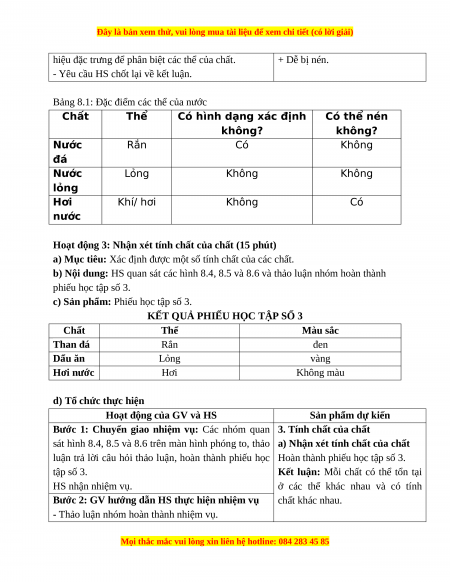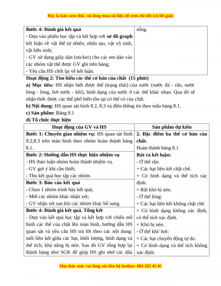 bày được một số đặc điểm cơ bản ba thể (trạng thái) của chất (rắn, lỏng, khí) thông