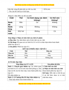 lỏng - lỏng, hơi nước - khí), hình dạng của nước ở các thể khác nhau. Qua đó sẽ