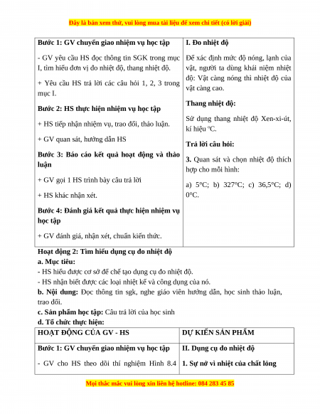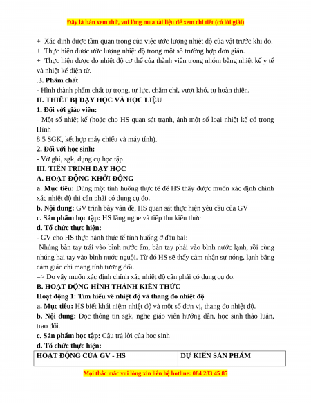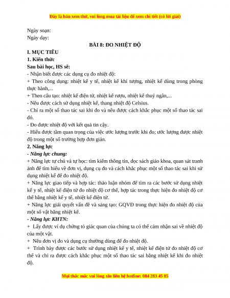 Giáo án Bài 8 KHTN 6 Kết nối tri thức (2024): Đo nhiệt độ