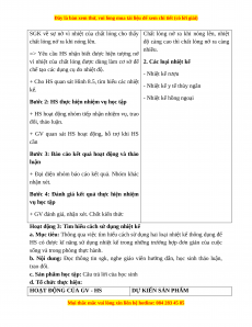 + Năng lực giao tiếp và hợp tác: thảo luận nhóm để tìm ra các bước sử dụng nhiệt