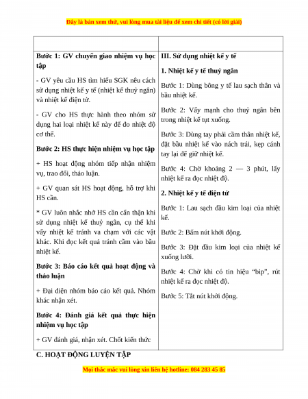 + Thực hiện được đo nhiệt độ cơ thể của thành viên trong nhóm bằng nhiệt kế y tế và nhiệt kế điện tử. .3. Phẩm chất