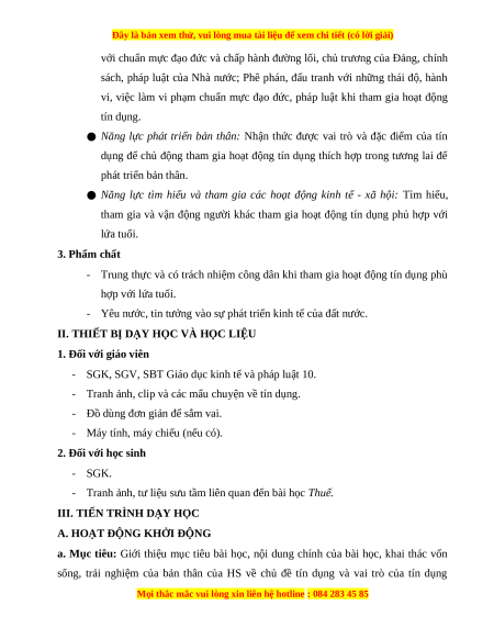- Nhận biết được vai trò tích cực của tín dụng đối với đời sống của bản thân, gia đình và xã hội. 2. Năng lực