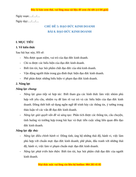 - Phê phán được những biểu hiện vi phạm đạo đức kinh doanh. 2. Năng lực