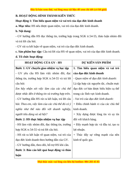 a. Mục tiêu: HS nêu được quan niệm, vai trò của đạo đức kinh doanh. b. Nội dung:
