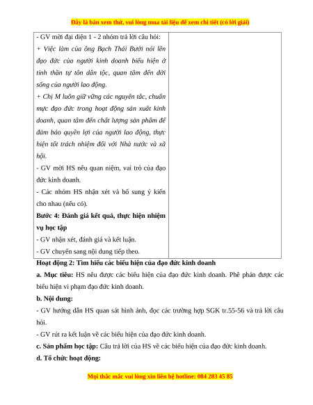 - GV rút ra kết luận về các biểu hiện của đạo đức kinh doanh.