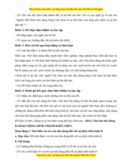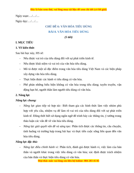 BÀI 8. VĂN HÓA TIÊU DÙNG (5 tiết) I. MỤC TIÊU 1. Về kiến thức Sau bài học này, HS sẽ:
