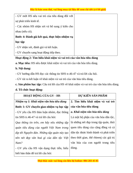 Hoạt động 2: Tìm hiểu khái niệm và vai trò của văn hóa tiêu dùng