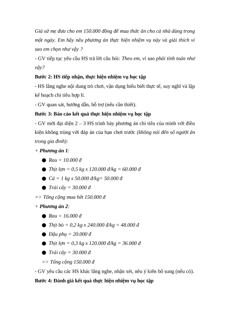 Giả sử mẹ đưa cho em 150.000 đồng để mua thức ăn cho cả nhà dùng trong