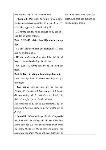 trong thực tiễn cuộc sống về lập kế hoạch chi tiêu. 3. Phẩm chất