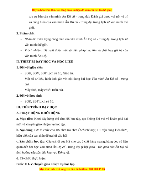 - Trách nhiệm: Đề xuất được một số biện pháp bảo tồn và phát huy giá trị của văn minh Ấn Độ.