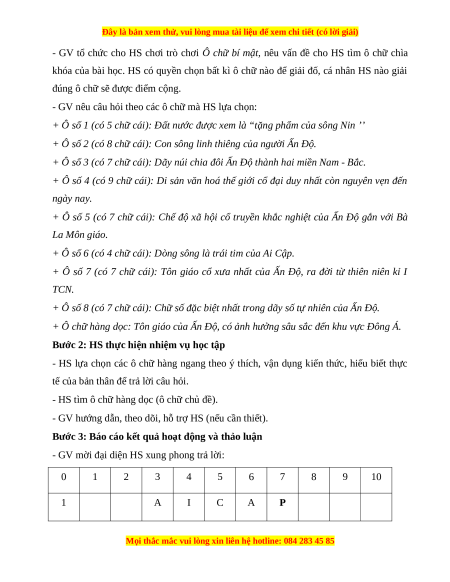 - GV tổ chức cho HS chơi trò chơi Ô chữ bí mật, nêu vấn đề cho HS tìm ô chữ chìa