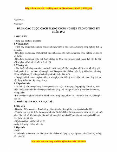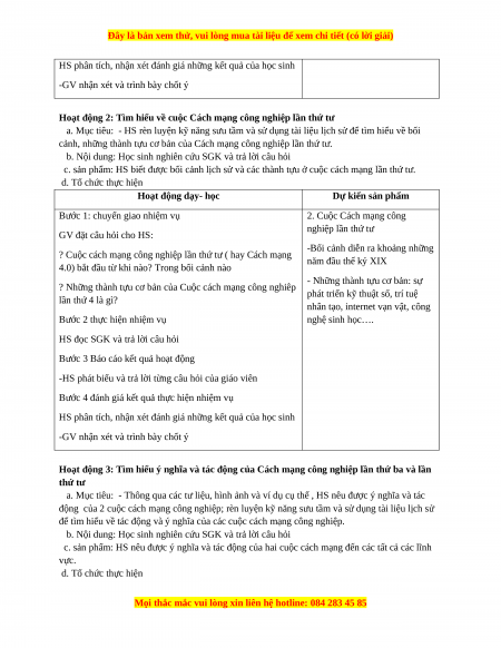 động của 2 cuộc cách mạng công nghiệp; rèn luyện kỹ năng sưu tầm và sử dụng tài liệu lịch sử