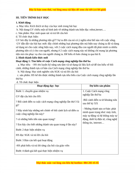 c. sản phẩm: HS kể tên được những thành tựu tiêu biểu của Cuộc cách mạng công nghiệp lần thứ ba d. Tổ chức thực hiện