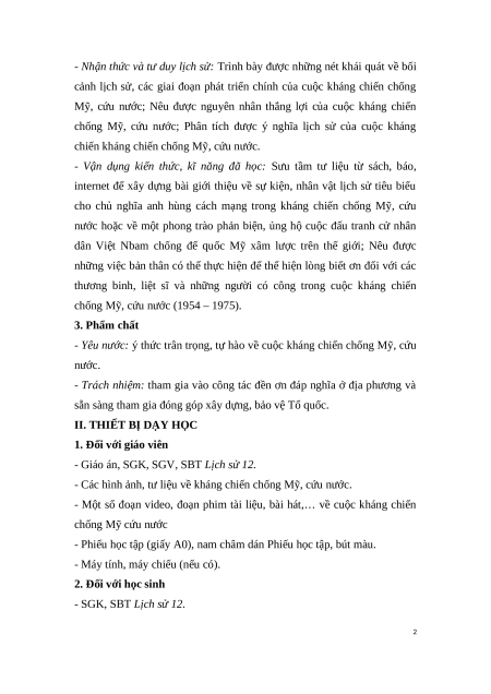 - Phân tích được ý nghĩa lịch sử của cuộc kháng chiến kháng chiến chống Mỹ, cứu nước.
