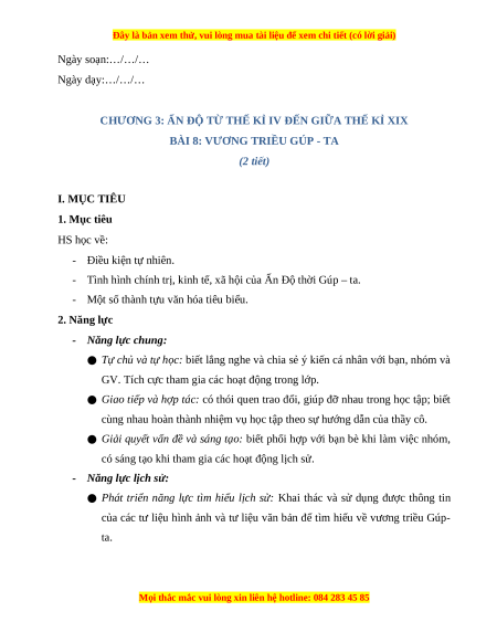 Giáo án Bài 8 Lịch sử 7 Chân trời sáng tạo: Vương triều Gúp - ta (phiên bản 2)
