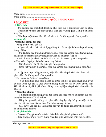 BÀI 8: VƯƠNG QUỐC CAM PU CHIA I. MỤC TIÊU: 1. Kiến thức:
