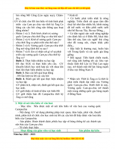 - Trân trọng, giữ gìn truyền thống đoàn kết giữa Việt Nam với Cam-pu-chia.. Năm học 2022 - 2023