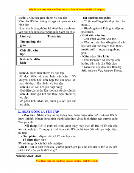 - Mục tiêu: Trình bày được sự hình thành và phát triển của vương quốc Campuchia