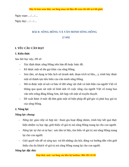 Đề xuất được ở mức độ đơn giản một số biện pháp để giữ gìn và phát huy giá trị của sông Hồng. 2. Năng lực