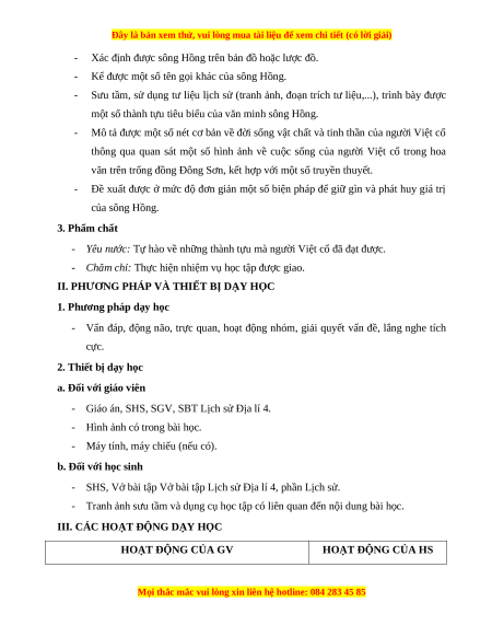 Giáo án Bài 8 Lịch sử & Địa lí lớp 4 Cánh diều: Sông Hồng văn văn minh sông Hồng