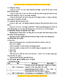 - Phương pháp: Thuyết trình, vấn đáp, gợi mở, trực quan, thực hành sáng tạo, thảo