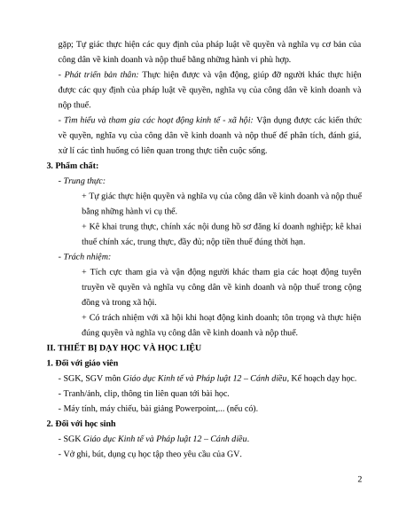 - SGK, SGV môn Giáo dục Kinh tế và Pháp luật 12 – Cánh diều, Kế hoạch dạy học.