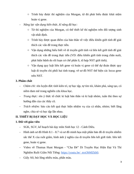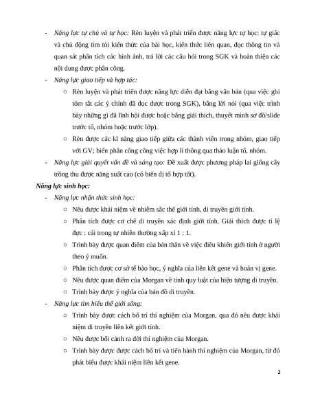 luật di truyền chi phối hai tính trạng; vẽ sơ đồ NST thể hiện các locus gene trên NST. 3. Phẩm chất