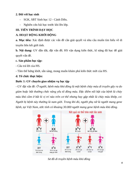 - GV đặt vấn đề: Ở người, bệnh máu khó đông là một bệnh chảy máu di truyền gây ra do