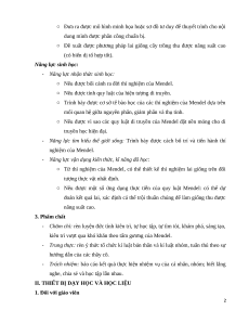 - Năng lực tìm hiểu thế giới sống: Trình bày được cách bố trí và tiến hành thí nghiệm của Mendel.