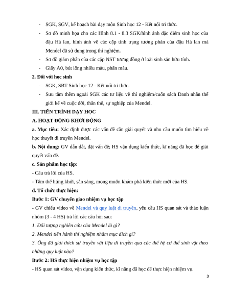 Giáo án Bài 8 Sinh học 12 Kết nối tri thức: Học thuyết di truyền của Mendel