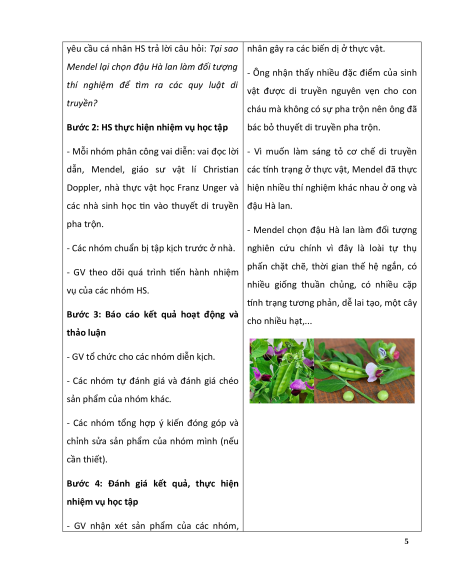 kịch bản, sau đó phân công nhiệm vụ để - Mendel đam mê với công tác chọn giống