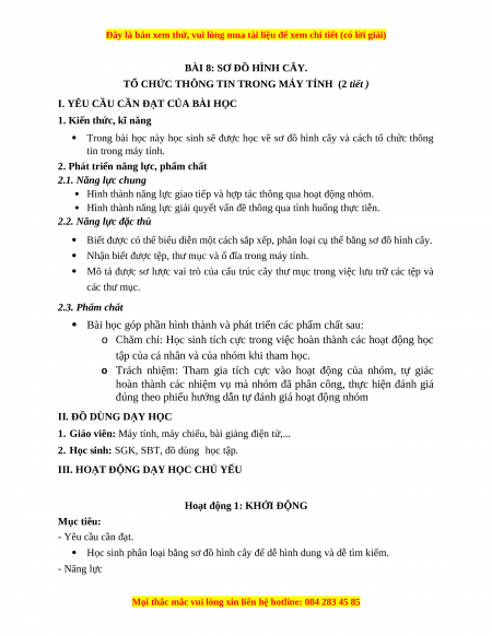 Trong bài học này học sinh sẽ được học về sơ đồ hình cây và cách tổ chức thông tin trong máy tính.