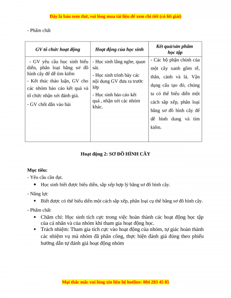 Hoạt động 2: SƠ ĐỒ HÌNH CÂY Mục tiêu: - Yêu cầu cần đạt.