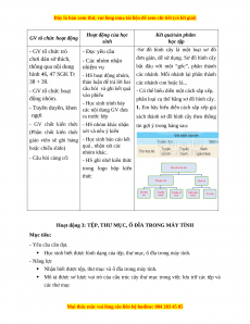 Hoạt động 3: TỆP, THƯ MỤC, Ổ ĐĨA TRONG MÁY TÍNH Mục tiêu: - Yêu cầu cần đạt.