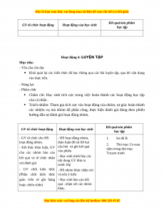 III. HOẠT ĐỘNG DẠY HỌC CHỦ YẾU