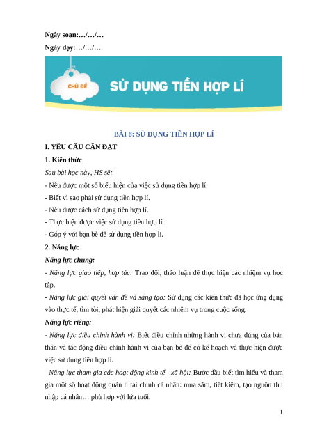 BÀI 8: SỬ DỤNG TIỀN HỢP LÍ