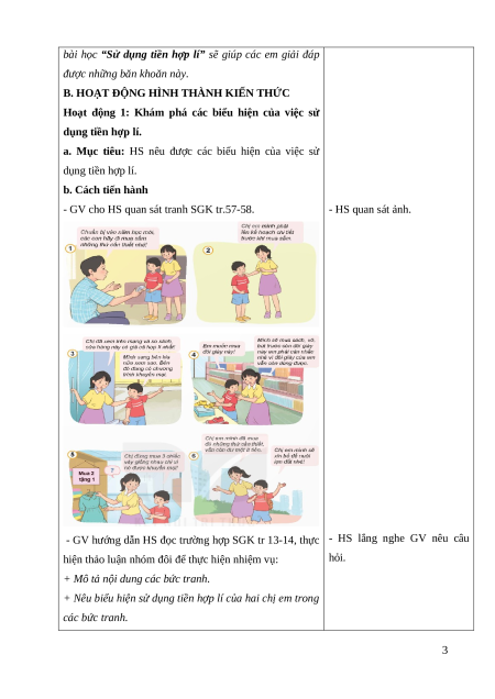 a. Mục tiêu: HS nêu được các biểu hiện của việc sử dụng tiền hợp lí. b. Cách tiến hành