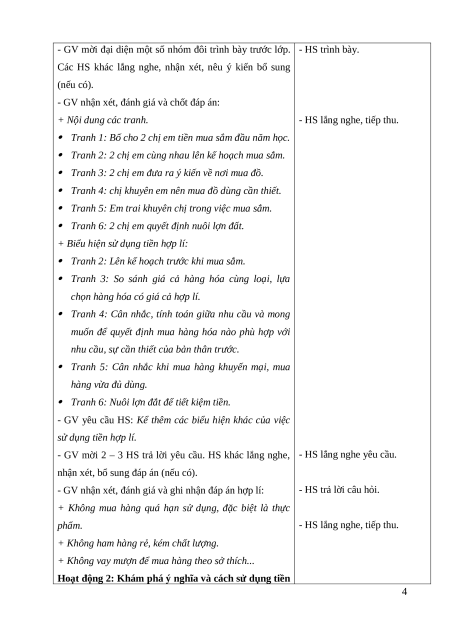 Hoạt động 2: Khám phá ý nghĩa và cách sử dụng tiền 4