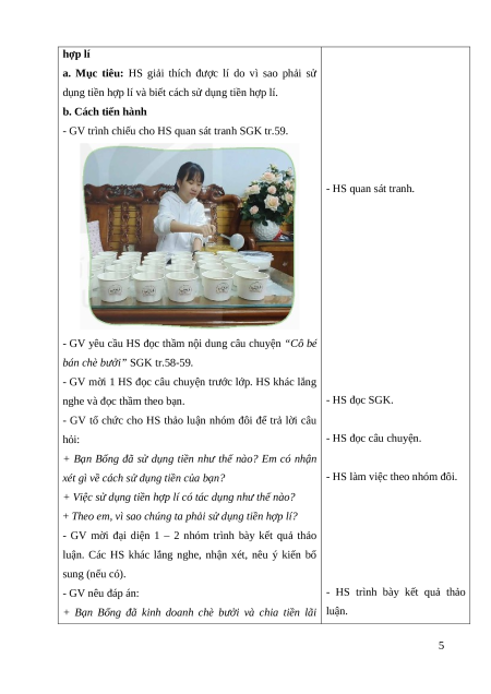 Giáo án Bài 8: Sử dụng tiền hợp lí Đạo đức lớp 5 Kết nối tri thức