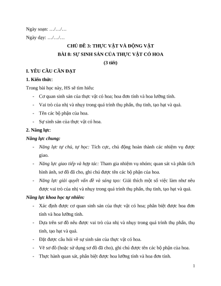 - Sự sinh sản của thực vật có hoa. 2. Năng lực: