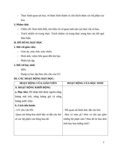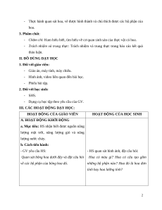 - Thực hành quan sát hoa, vẽ được hình thành và chú thích được các bộ phận của hoa. 3. Phẩm chất: