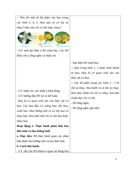 - GV yêu cầu HS nhóm 4 quan sát bông hoa 4