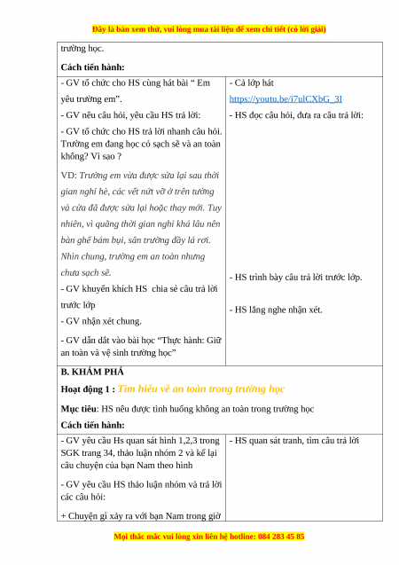 an toàn và vệ sinh trường học” B. KHÁM PHÁ