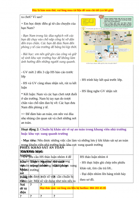 >6]^% Nêu được những việc cần làm và những lưu ý khi khảo sát sự an toàn