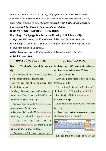 - Tư liệu đính kèm vào sơ đồ tư duy và tạo bài trình chiếu: tệp bảng tính, tệp