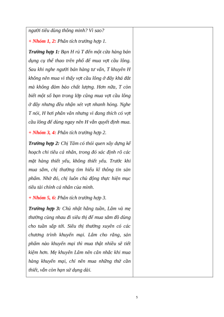- GV yêu cầu các nhóm đọc thông tin trong SGK có kế hoạch, tiết kiệm, biết lựa chọn