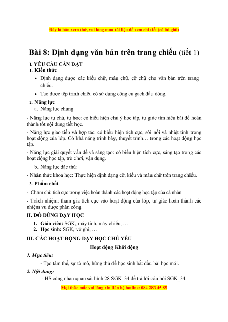 Bài 8: Định dạng văn bản trên trang chiếu (tiết 1)
