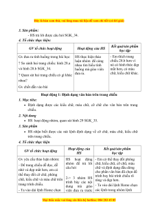 - HS trả lời được câu hỏi SGK_34. 4. Tổ chức thực hiện: Kết quả/sản phẩm GV tổ chức hoạt động Hoạt động của HS học tập