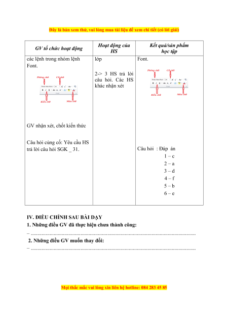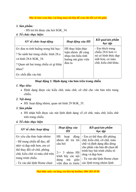Đây là bản xem thử, vui lòng mua tài liệu để xem chi tiết (có lời giải) Hoạt động của Kết quả/sản phẩm GV tổ chức hoạt động HS học tập