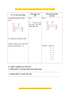 IV. ĐIỀU CHỈNH SAU BÀI DẠY
